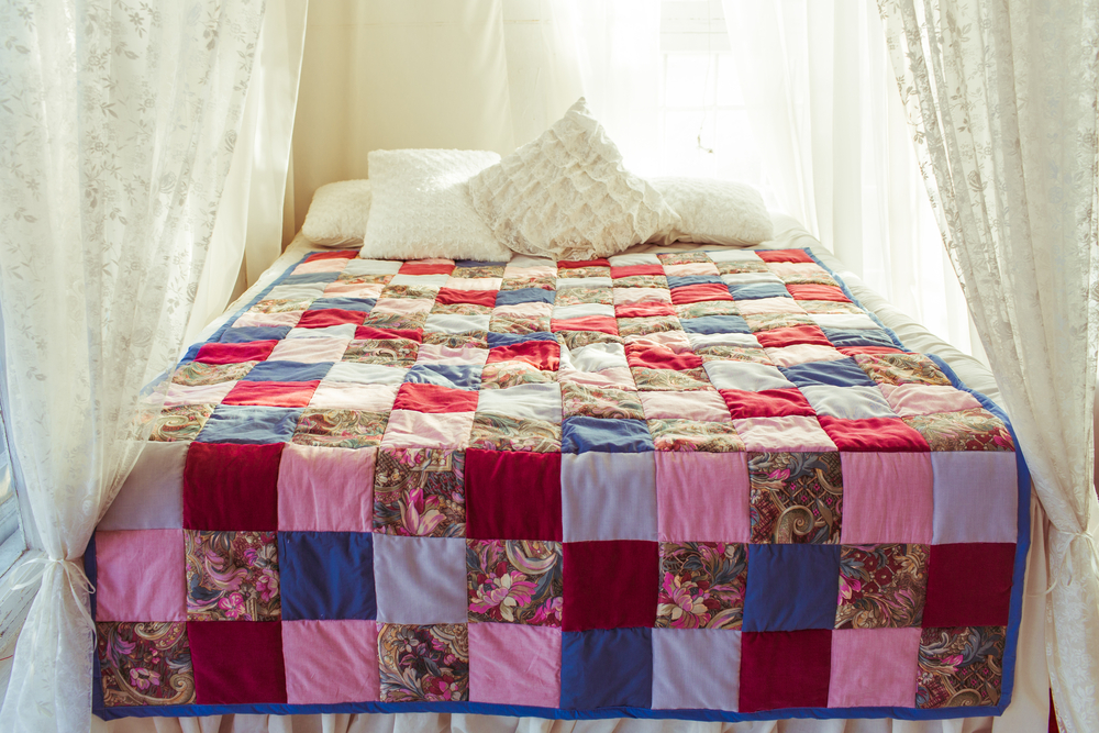 Одним из самых красивых видов покрывал считаются изделия в стиле пэчворк – разновидность рукоделия, популярное во всем мире хобби. Чтобы создать полотно, мастерицы сшивают друг с другом разноцветные лоскуты согласно схеме, комбинируют различные виды тканей, декоративные элементы. Применяют шелк, лен, хлопок, шерсть, вискозу. При помощи похожего метода изготавливаются лоскутные одеяла, которые также называют стеганными.