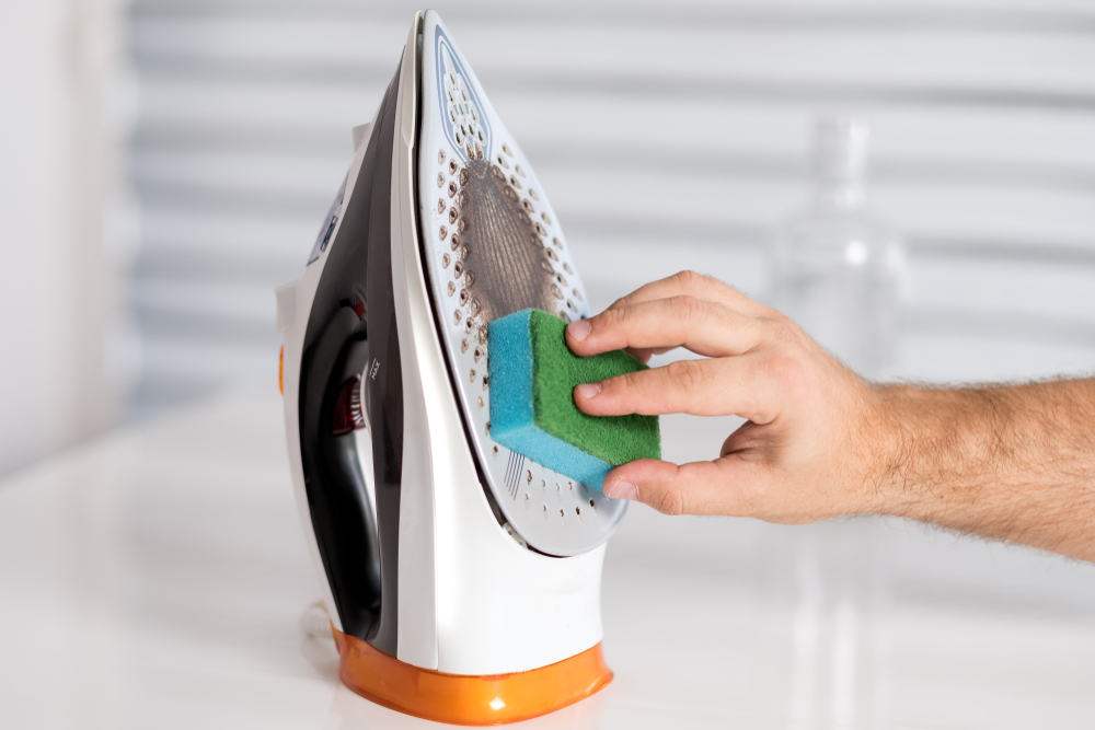 Разогрев до 100 °С, прибор отключают от сети и ставят рабочей поверхностью вниз на мокрое полотенце. Спустя 10—15 минут загрязнение должно отойти от металла, и останется только протереть подошву влажной губкой, добиваясь полной чистоты.